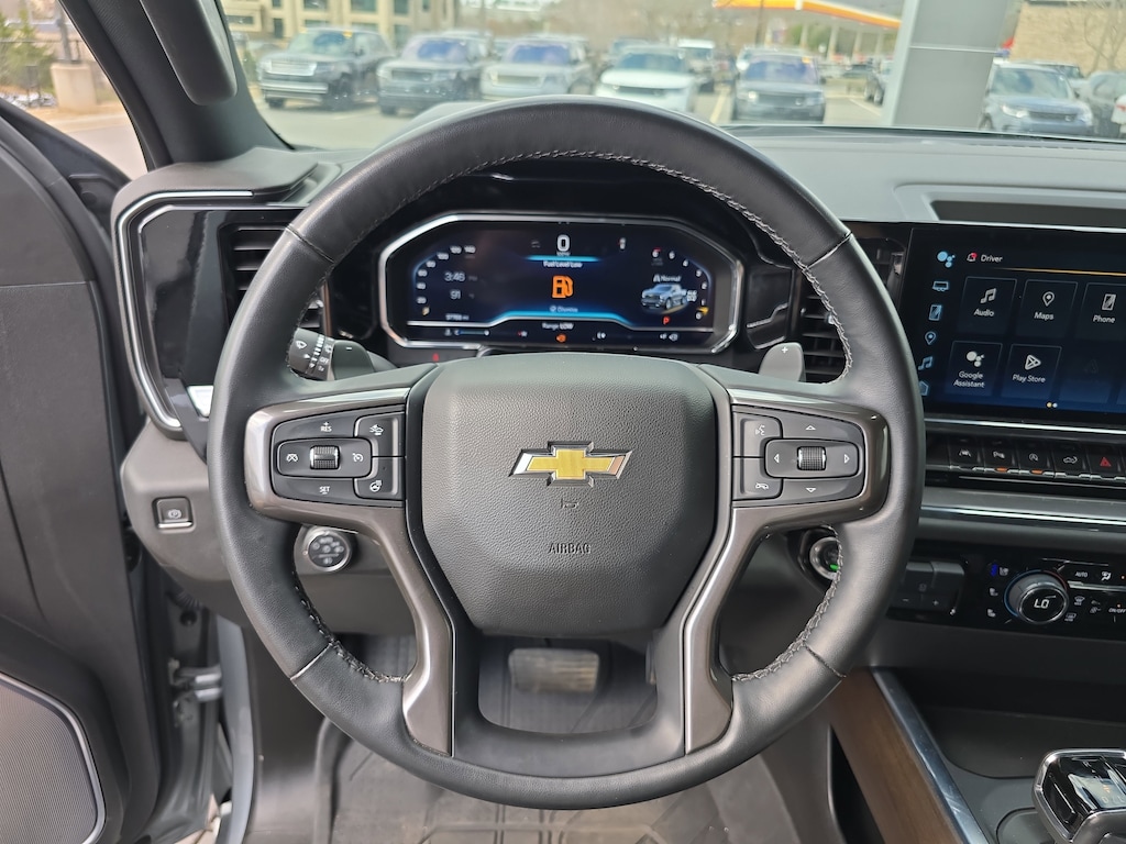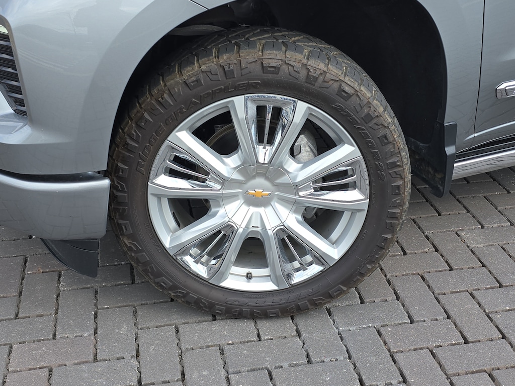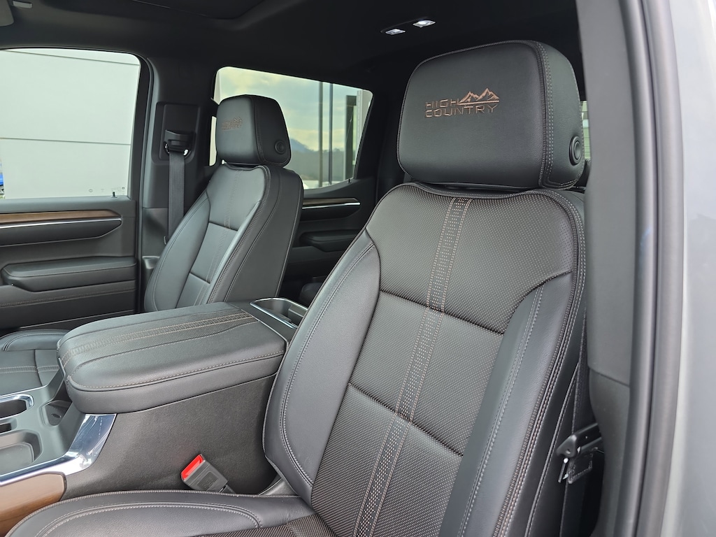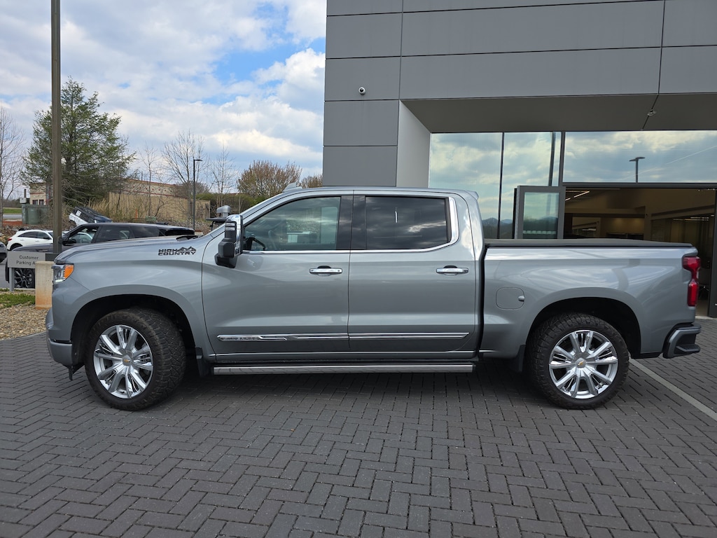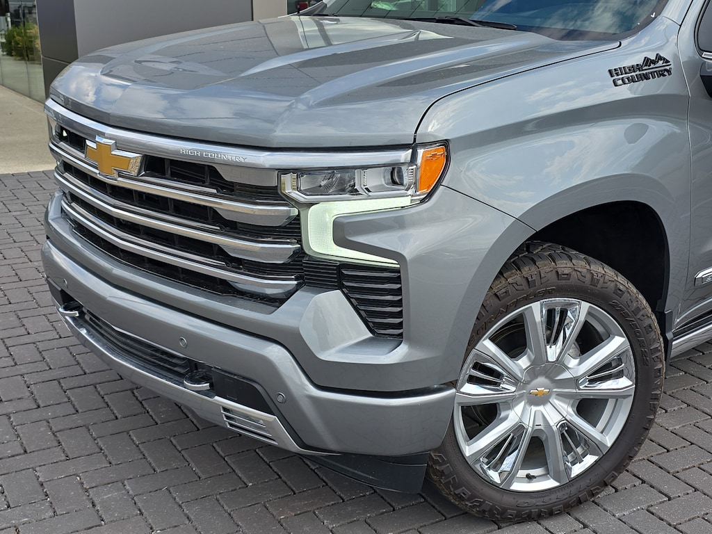 CARFAX One-Owner. Sterling Gray Metallic 2024 Chevrolet Silverado 1500 High Country 4WD 10-Speed Automatic EcoTec3 5.3L V8 10-Speed Automatic, 4WD, Black Leather, Adaptive Ride Control Suspension, All-Weather Floor Liner (LPO), Black Name Plates (LPO), Chrome Mirror Caps, Dark Essentials Package (LPO), High Country Premium Package, Multi-Flex Tailgate, Power Sunroof, Power-Retractable Assist Steps, Pwr-Adjustable Vertical Trailering Outside Mirrors, Wheels: 22" x 9" Painted Aluminum.