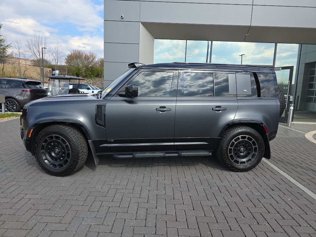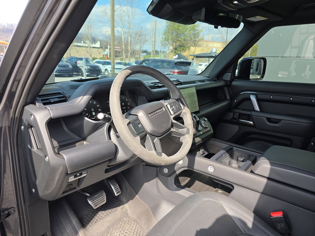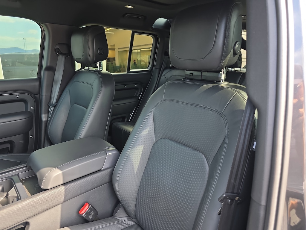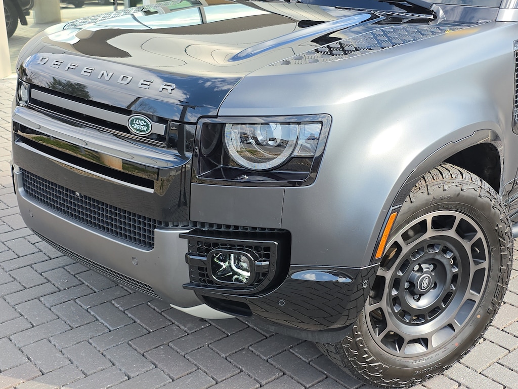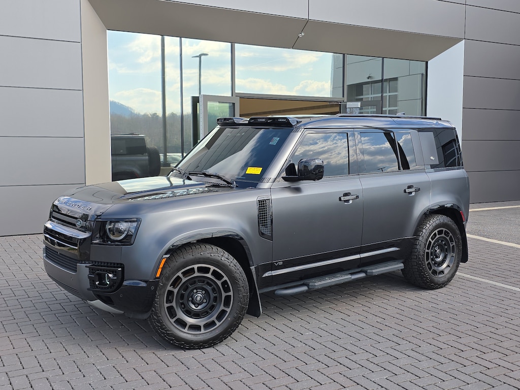Clean CARFAX. Carpathian Gray Premium Metallic 2024 ' ' Defender 110 Carpathian Edition 4WD 8-Speed Automatic 5.0L V8 Adaptive suspension, Auto High-beam Headlights, Heads-Up Display, Heated front seats, Heated rear seats, Power moonroof, Radio: 700W 15 Speaker Meridian Surround Sound Sys, Rain sensing wipers, Ventilated front seats, Wheels: 22" Gloss Black Finish Style 5098.